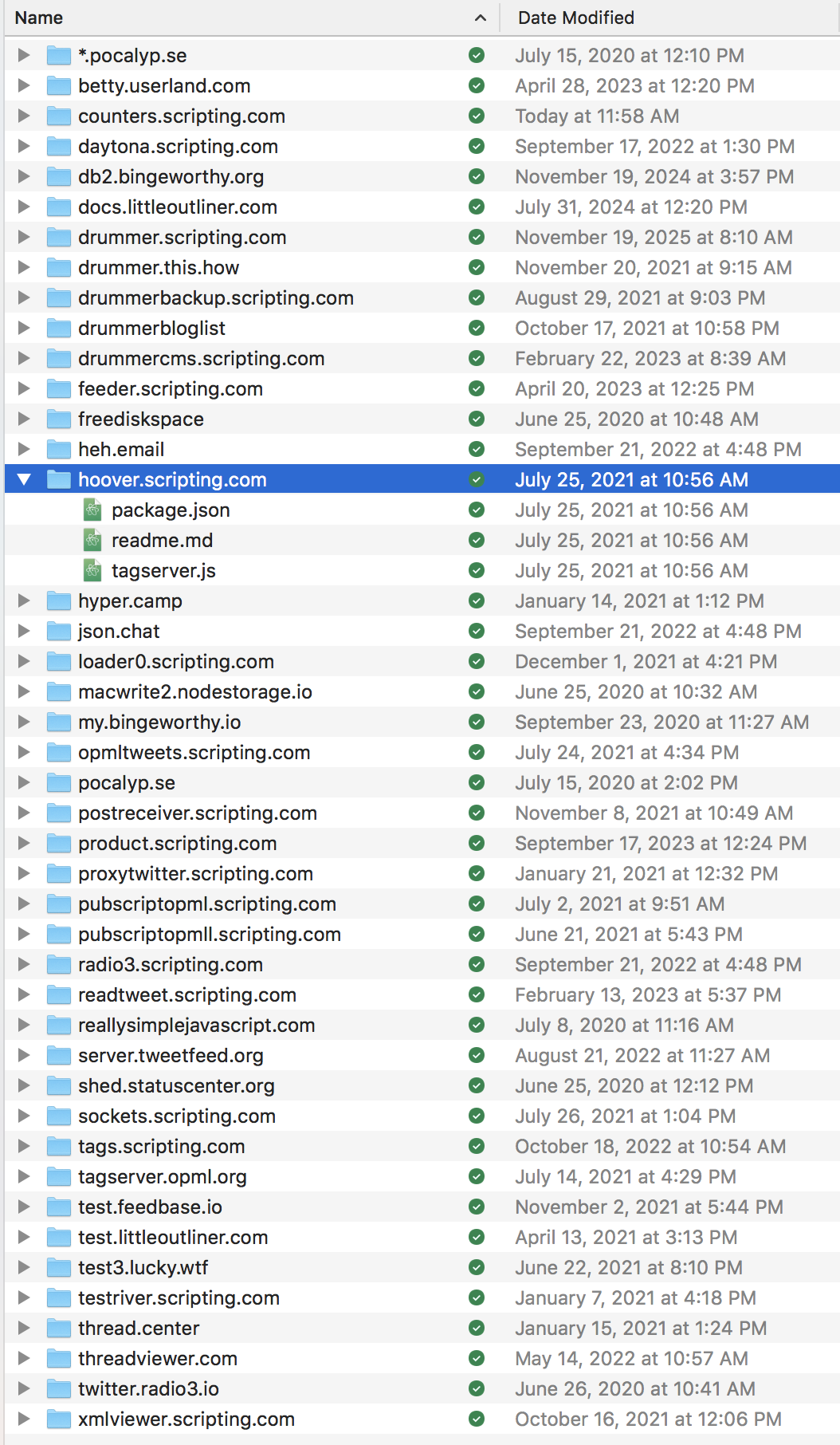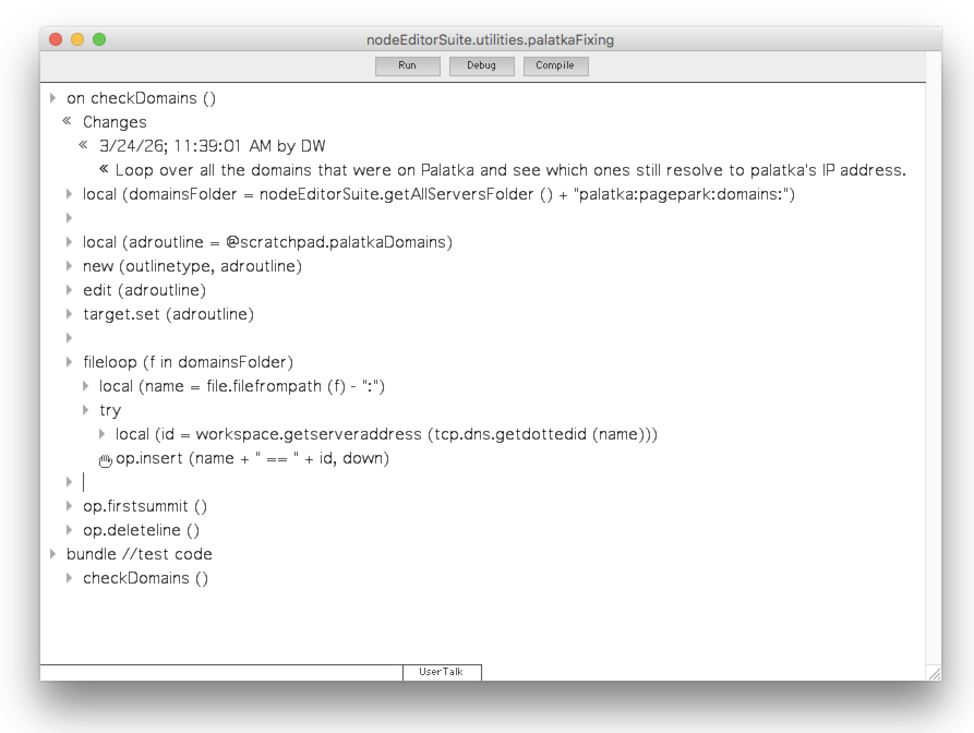 The script visited each subfolder, the filename is the domain of the folder, finds out which server it's supposed to be running on, based on a DNS lookup, and adds a line to a list.