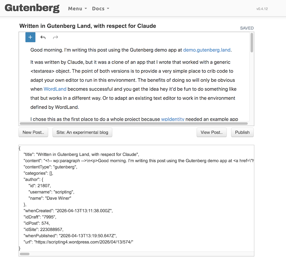 | Scripting News | XML | 19:42, Thursday, 16 April | 20:24, Thursday, 16 April |